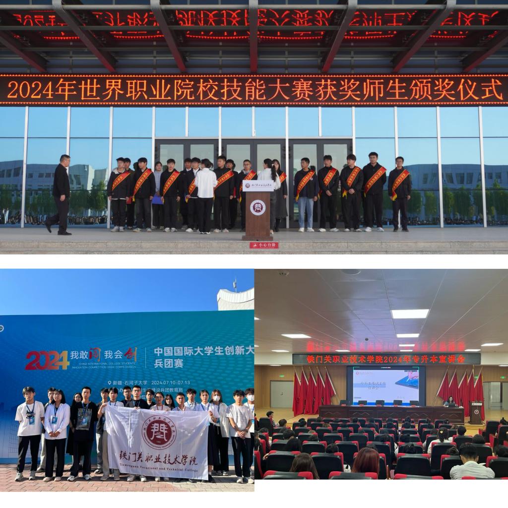 近年来,学院聚焦师生关切,以技能竞赛为抓手,通过开展GYB创业培训及大学生创新大赛培训,积极推进大学生创新能力培养;与此同时,加大专升本考试政策宣传,点亮学子升学路。2024年,学院师生参加各级各类技能大赛、创新创业大赛共获国家级一等奖1项,二等奖2项,三等奖3项,优秀奖1项,省赛(兵团赛)一等奖23项,二等奖47项,三等奖75项,优秀奖19项,优秀组织奖4个,专升本考试录取49名学生,录取人数再创新高!