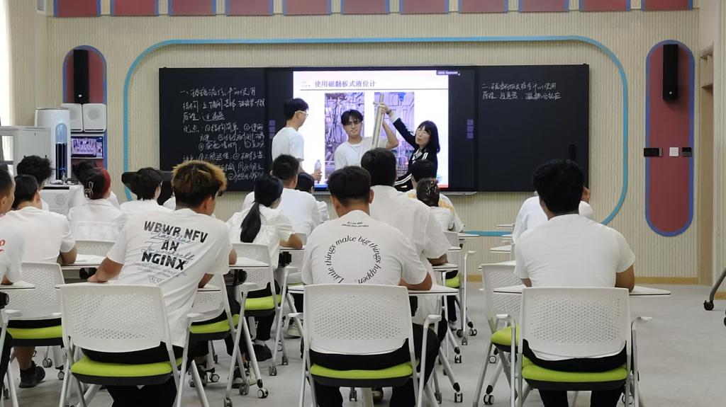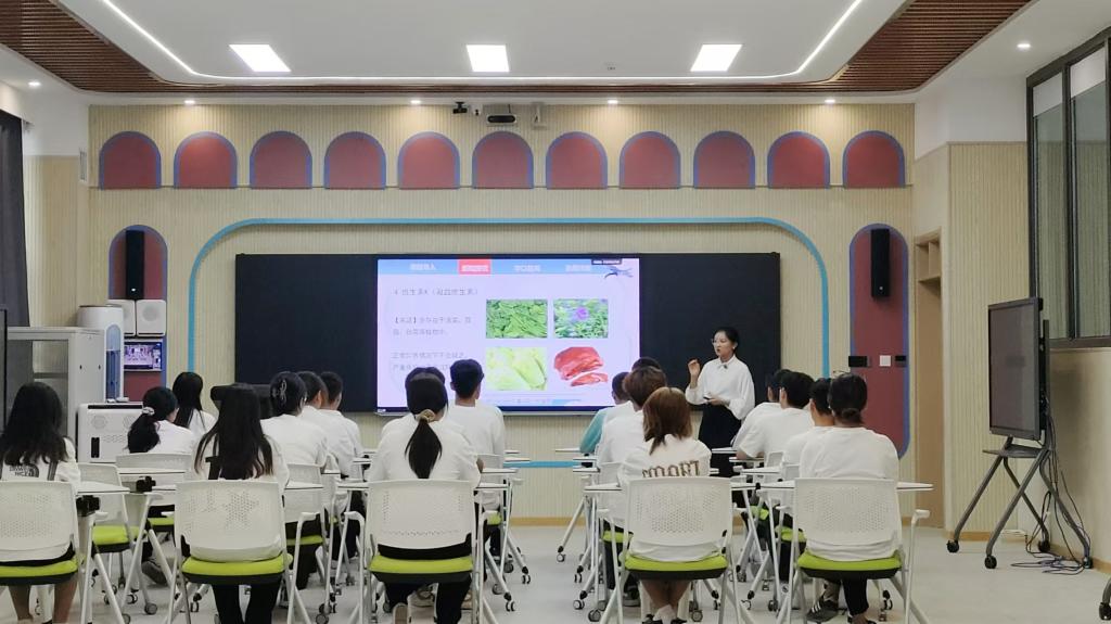 录课现场,老师融入新的教学理念,通过语言、表情动作,创设课堂情境,独具匠心的教学设计、寓教于乐的教学方式,展现了教师扎实的教学基本功。