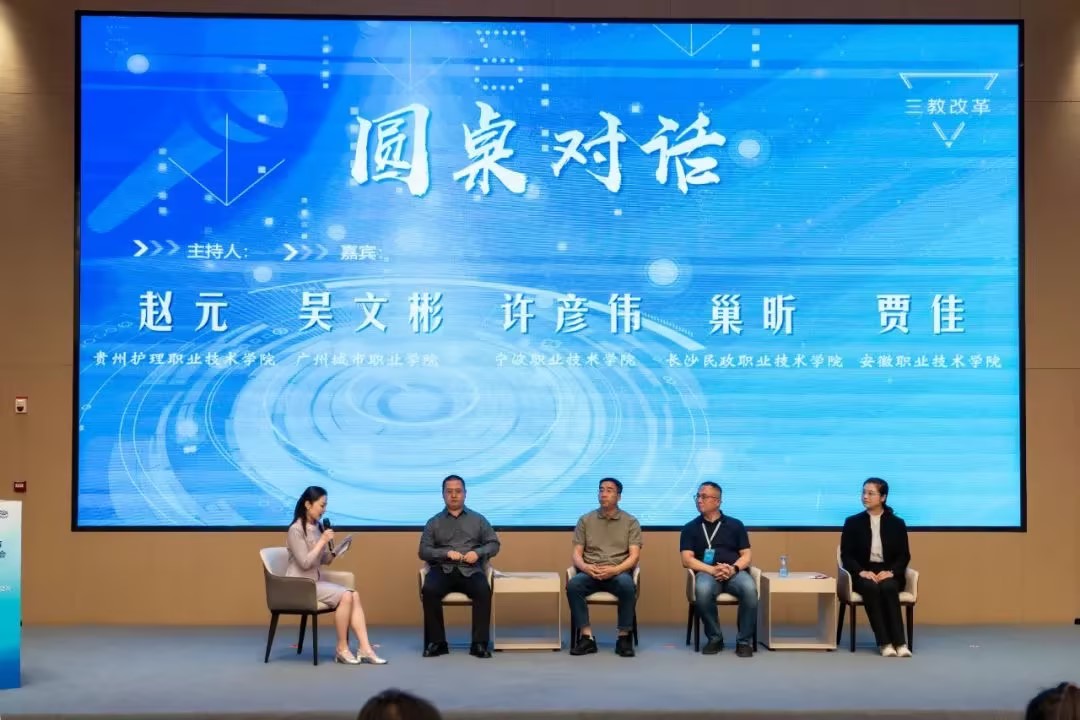 本次会议以“主题报告+圆桌对话+考察交流”相结合的方式开展。主题报告环节,专家围绕“数智赋能职业发展与就业创业教育变革”主题,分别从协同创新、AI赋能、课赛融通、思专就创融合、“三教”改革等五个模块作主题报告。
