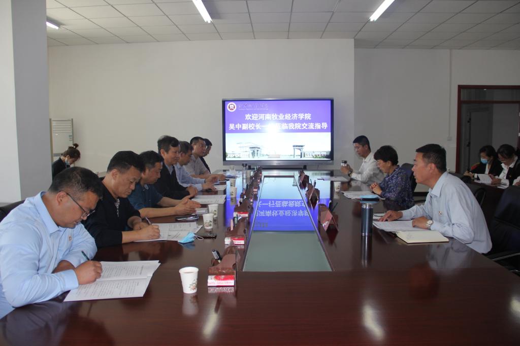 为深入推进校校合作,培养高端技能人才,提升办学实力。5月18—20日,河南牧业经济学院副校长吴中一行5人来到beat365官方网站共商校校合作办学事宜,学院党委委员、副院长王新国主持座谈会,学院党委班子成员及全体中层干部出席会议。