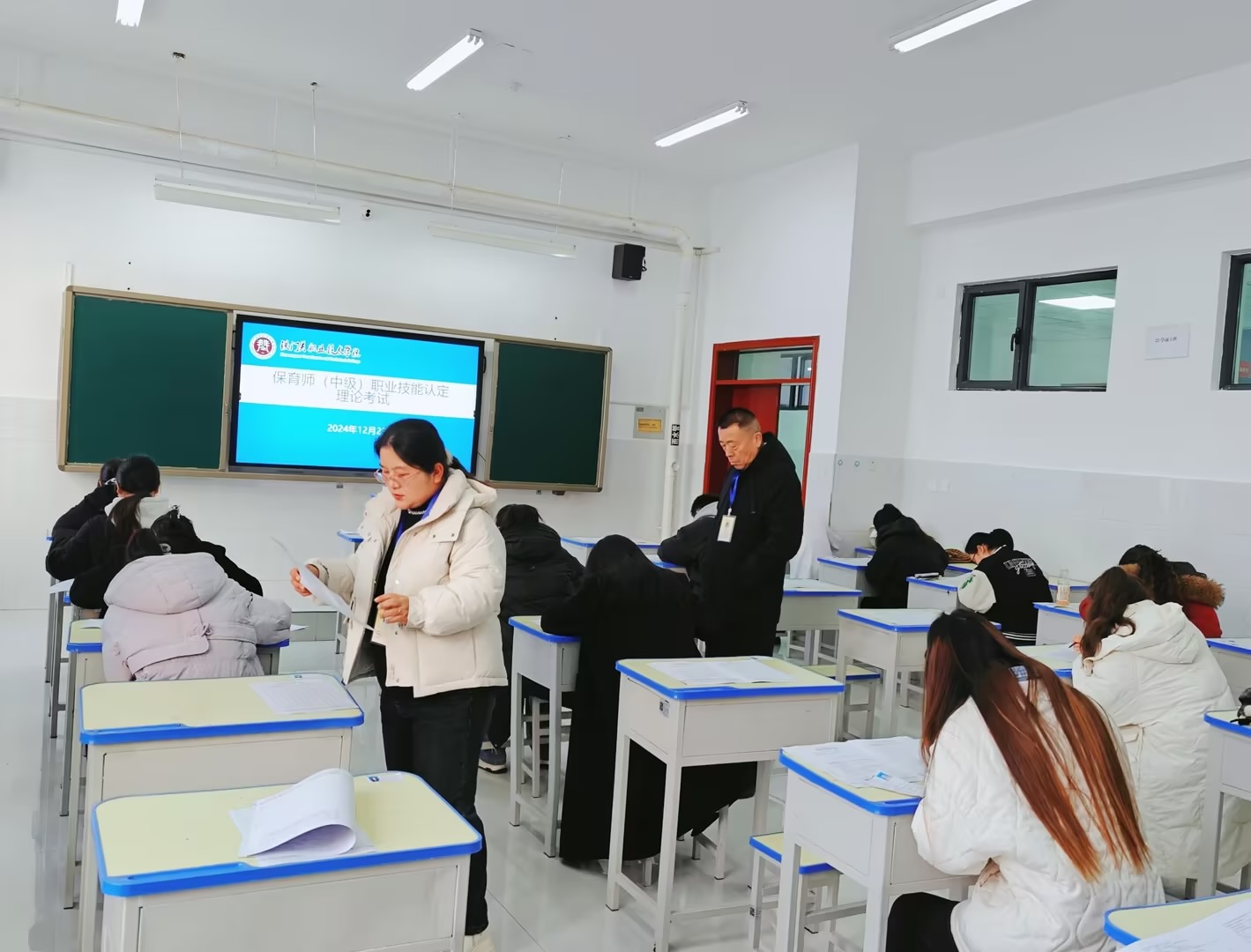 认定过程中,工作人员严格按照保育师国家技能标准,对参评的学生进行全面的理论考核和技能实操测试,确保职业技能认定的公正性和权威性。考试内容涵盖儿童心理学、幼儿教育方法、急救知识以及日常护理技巧等多个方面,学生们在紧张而有序的氛围中展示自己的专业素养和实际操作能力。