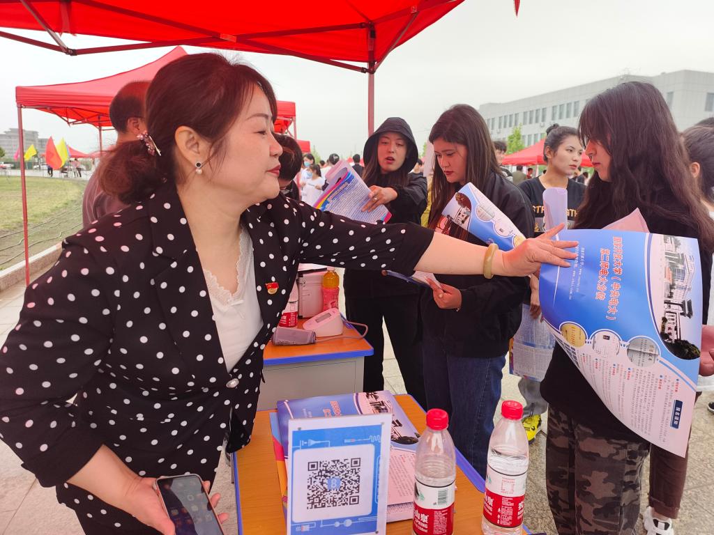 5月20日,beat365官方网站校园双选会在学院前广场举行,91家用人单位和学院近2000名学生齐聚招聘现场,第二师铁门关市开放大学以此次双选会为契机,面向企业及毕业生开展了“就业升学两不误,开放大学线上等你”的招生宣传活动。