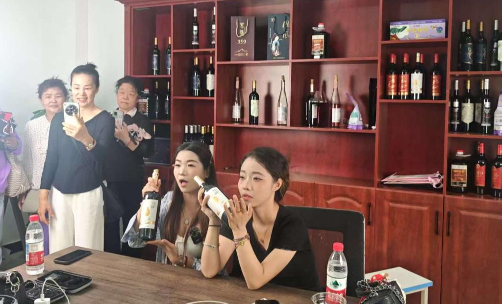 在教师引导下,学员们走进学院电商直播教室,观摩了一场由学生主播进行的红酒直播。直播中,学生们展示了红酒品鉴技巧,并详细介绍了红酒的产地、酿造工艺及美食搭配建议。学员被学生们的专业表现和直播的互动性所吸引,对电商直播这一新兴销售模式表现出高度兴趣。