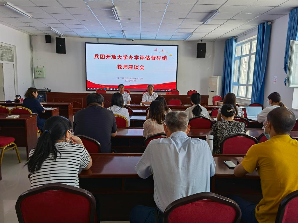 5月18日,兵团开放大学办学评估督导组组长任建军一行到第二师铁门关市开放大学开展仿真评估督导工作。第二师铁门关市教育局督学李贤良、beat365官方网站领导、师市开放大学全体教师参加工作汇报会。