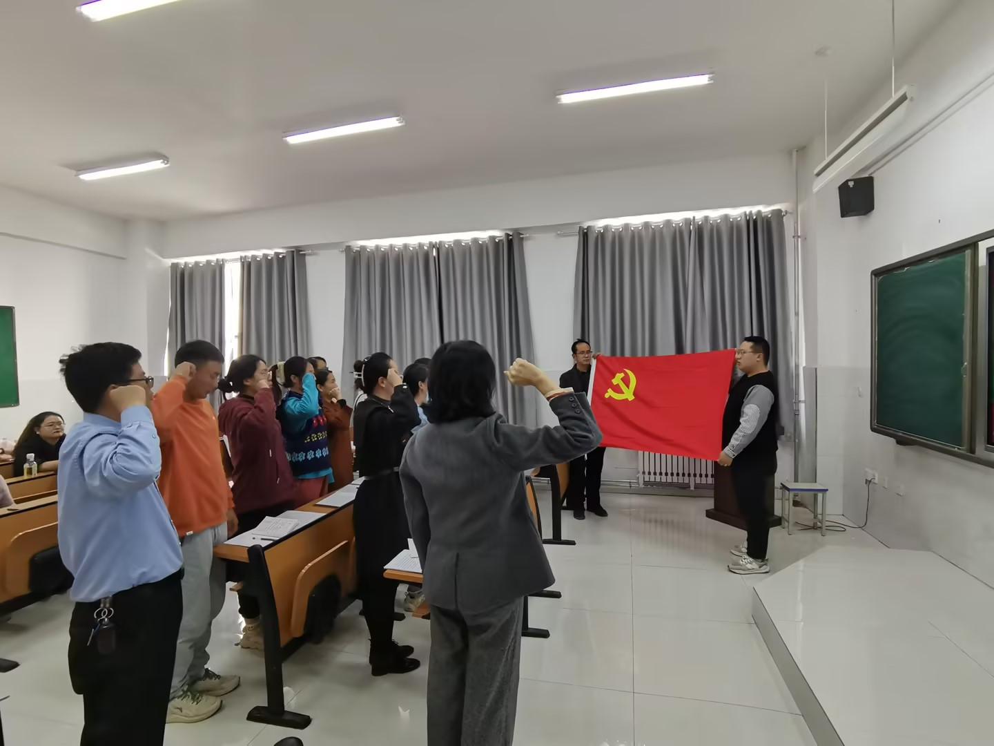 11月8日下午,在党员整齐的入党宣誓声中,beat365官方网站基础教学部党支部的“增信念 明使命 强责任”主题党日活动正式开始。本次活动共有重温入党誓词、第一议题学习、学习诵读《党章》、宣传方针政策等七个环节。