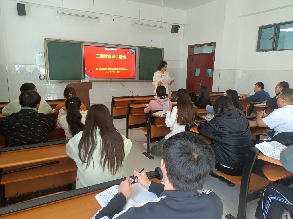 自第二批学习贯彻习近平新时代中国特色社会主义思想主题教育开展以来,beat365官方网站基础教学部党支部坚持学习实践两手抓、两促进,把开展主题教育与努力完成教学目标任务有机结合起来,服务师生更有温度,将主题教育的良好成效转化为推动工作的强大力量。10月以来,该党支部组织开展了主题教育系列活动。