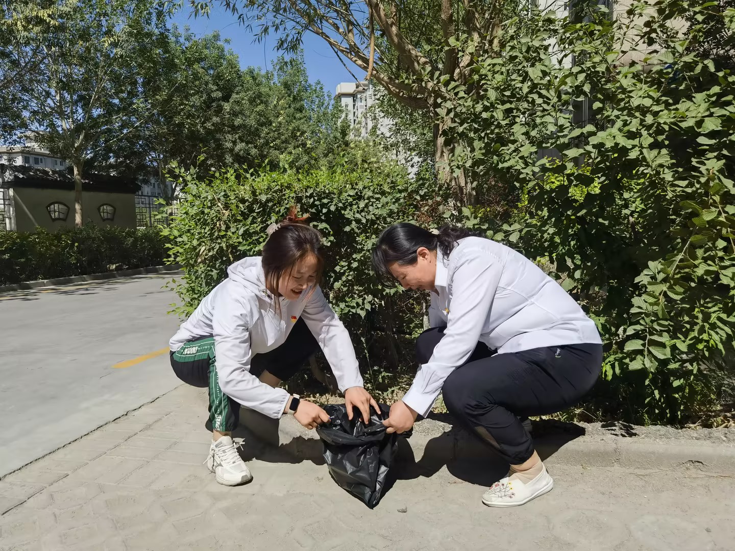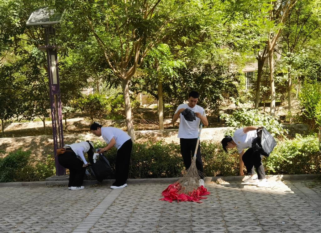 观展鼓舞精神,行动检验思想。参观学习后,党支部成员来到滨河苑小区开展“我为群众办实事”志愿服务活动。在小区网格负责人带领下,大家清理垃圾,整理社区环境,并与该网格党支部进行深入交流,为后续支部携手共建,做好更优质的志愿服务交换了彼此意见。