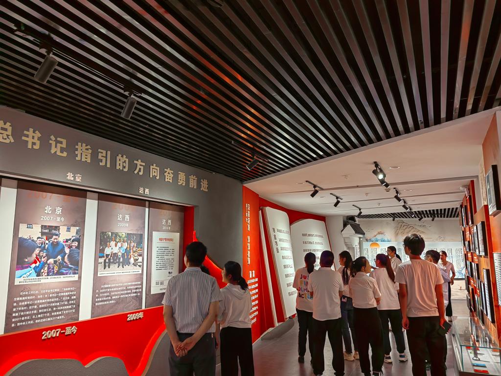 跟随展馆讲解员,党员们首先参观了达西展馆一楼展厅——红色达西。一楼展厅通过达西的人、事、物、魂为线索,全面展示达西村在党的富民政策阳光照耀下发生的巨大变迁。步入二楼展厅——百年党史。该展厅以中国共产党成立百年间所经历的重要历史事件为主线,展现了中国共产党从弱小到强大,带领全国人民得解放、求发展、谋复兴的伟大成就。接着,来到三楼展厅——传习精神。三层以习近平总书记的人生经历和成长足迹为线索,充分展现了习近平总书记“我将无我,不负人民”的崇高品格,揭示了共产党人为人民服务的宗旨意识。最后,大家随着讲解员来到位于达西展馆旁新建的航天展馆参观学习,进一步了解我国从一个航天大国迈向航天强国的奋斗历程。