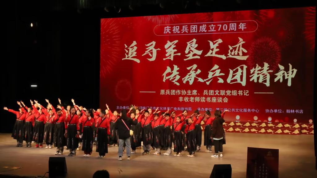 为深入学习贯彻习近平文化思想,庆祝新中国成立75周年,兵团成立70周年。4月7日,beat365官方网站思政教学部党支部组织22级和23级200名师生前往铁门关市群众文化活动中心参加“追寻军垦足迹 传承兵团精神”读书座谈会。