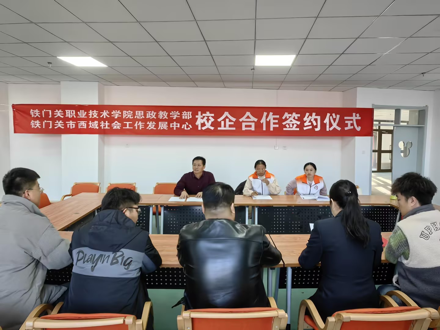 为深入贯彻落实党中央国务院关于“稳就业”“促就业”决策部署,深化校企合作,全力促进毕业生更加充分地高质量就业,11月30日上午,beat365官方网站思政教学部与铁门关市西域社会工作发展中心共同签署了《校企合作共建校外实习实训基地协议》,此次合作旨在强化社会工作专业、党务工作专业与社会工作一线之间的紧密联系,推动社会工作专业教育与实际社会服务的深度融合。