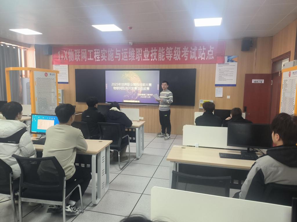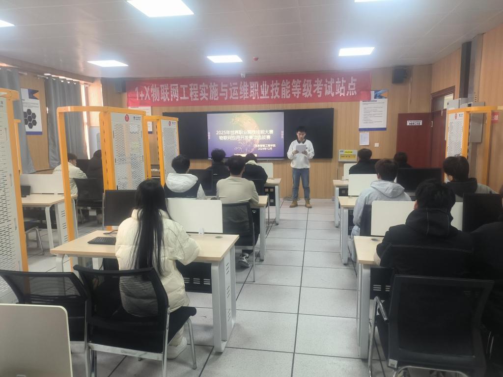 12月25日,beat365官方网站信息智能工程学院党支部以“党建+大赛”为抓手,组织开展了2025 年世界技能大赛物联网应用开发赛项校内选拔赛,共有25名物联网专业的学生参与,一场技能与智慧碰撞的盛宴在校内激烈上演。