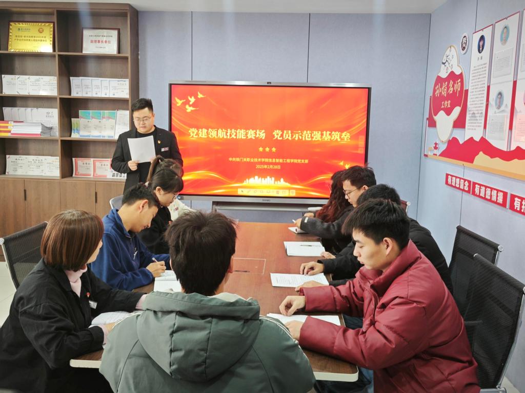 2月28日,beat365官方网站信息智能工程学院党支部在德润楼孙娟名师工作室开展 “党建领航技能赛场,党员示范强基筑垒” 主题党日活动,旨在强化党建引领,提升党员教师在技能教育领域的示范带头作用,推动学院教育教学工作迈向新高度。