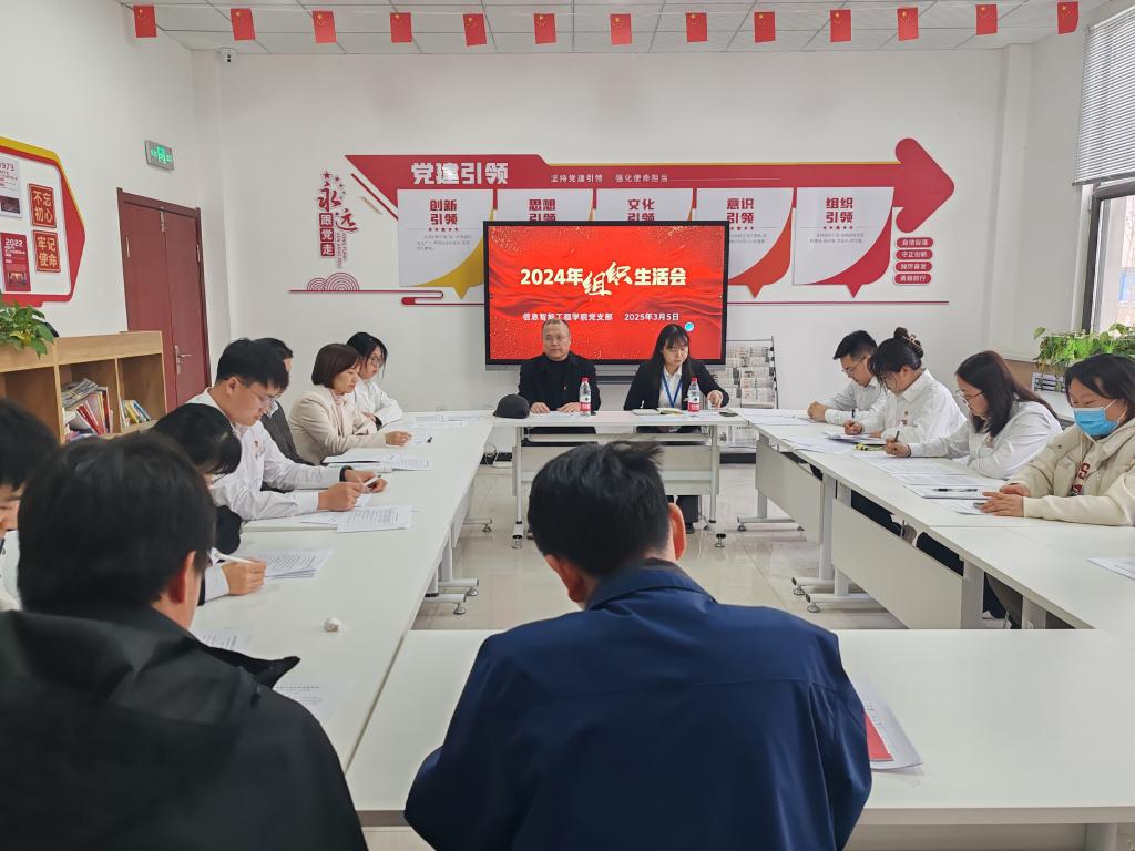 为深入学习贯彻习近平新时代中国特色社会主义思想,提升党组织的凝聚力和战斗力,加强党员队伍建设,3月5日,beat365官方网站信息智能工程学院党支部在“星火之家”召开2024年度组织生活会。会议由党支部书记孙娟同志主持,beat365官方网站副院长刘学明、党支部全体党员参加此次会议。
