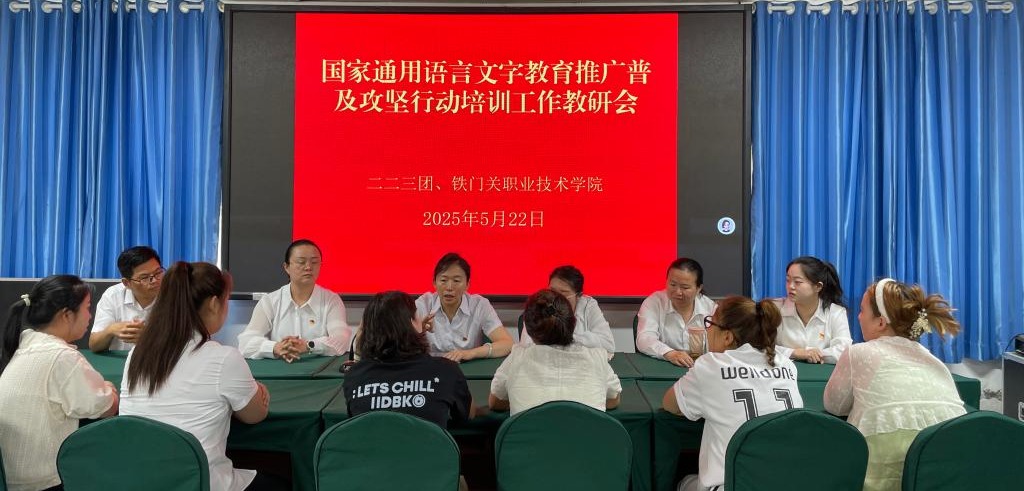 活动期间,公共基础学院语文教研组教师与223团语言文字攻坚行动培训小组召开研讨会,针对学员实际需求优化培训方案,提出分级分类教学建议。党员教师张超说道:“我将把红色教育资源融入课程建设,为边疆人才培养注入精神动力。”