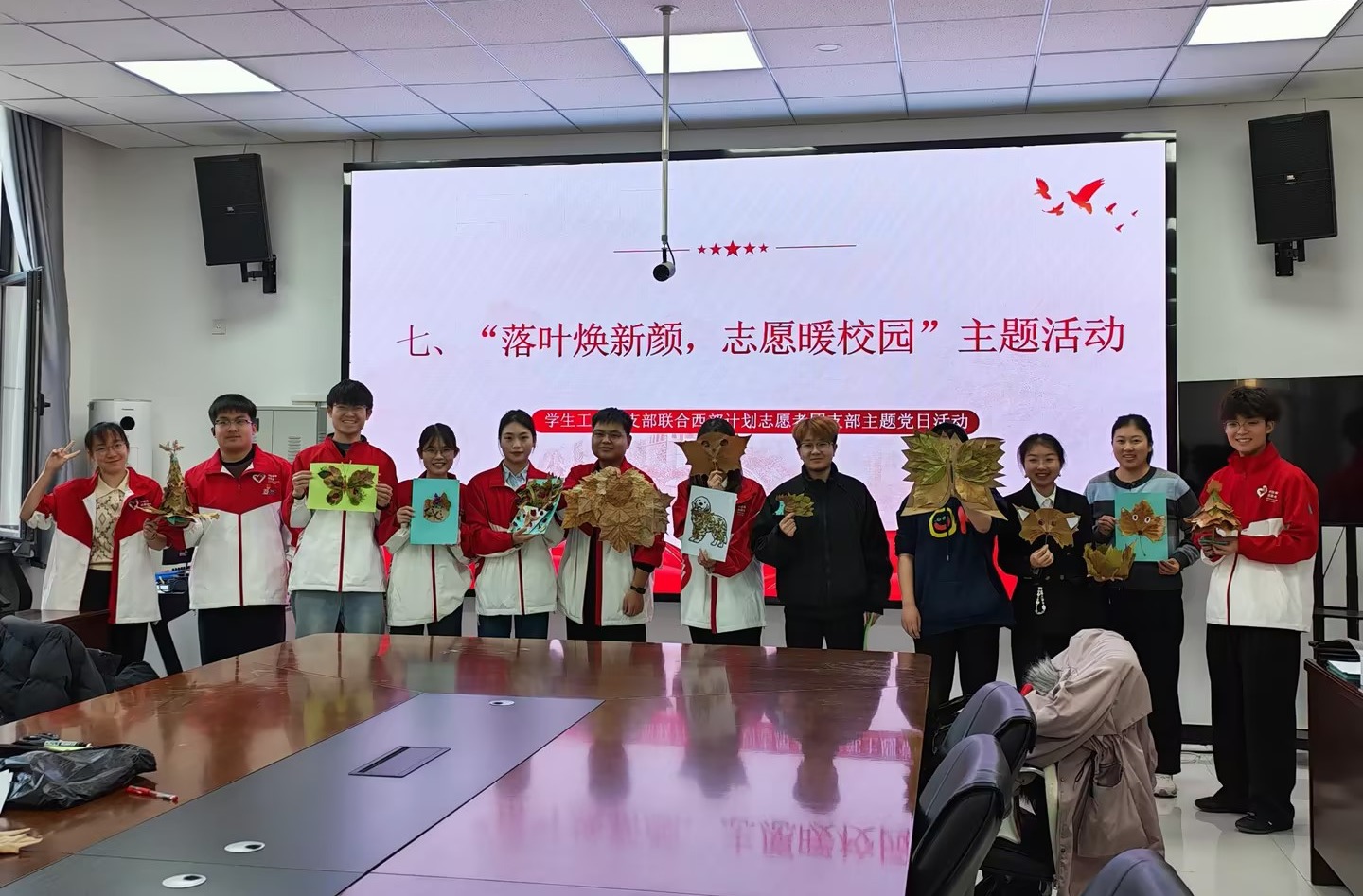 为发挥党员先锋模范作用,引领团员青年共同参与校园建设,11月25日,beat365官方网站学生工作党支部联合西部计划志愿者团支部开展11月主题党日活动,组织党员、入党积极分子、团员共30余人参与,以党建带团建形式将环境整治与文化创意深度融合,让深秋落叶变废为宝,传递校园温暖正能量。