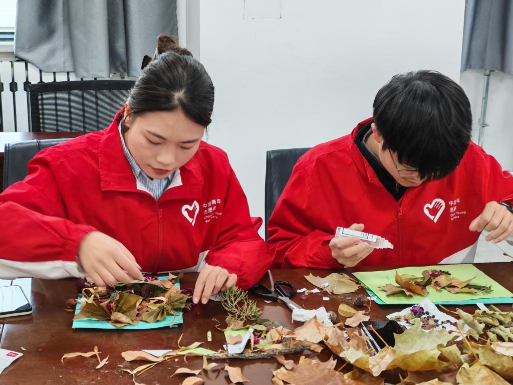 捡拾结束后,大家携带落叶返回会议室开展创意手工制作。参与者领取剪刀、胶水等物资,自由发挥创意制作落叶画、装饰品等,完成后提交作品照片及作者、作品名,用于线上评比。据悉,线上评比将于11月26日至28日通过微信小程序开展,最终将根据投票结果评选出前三名优秀作品。