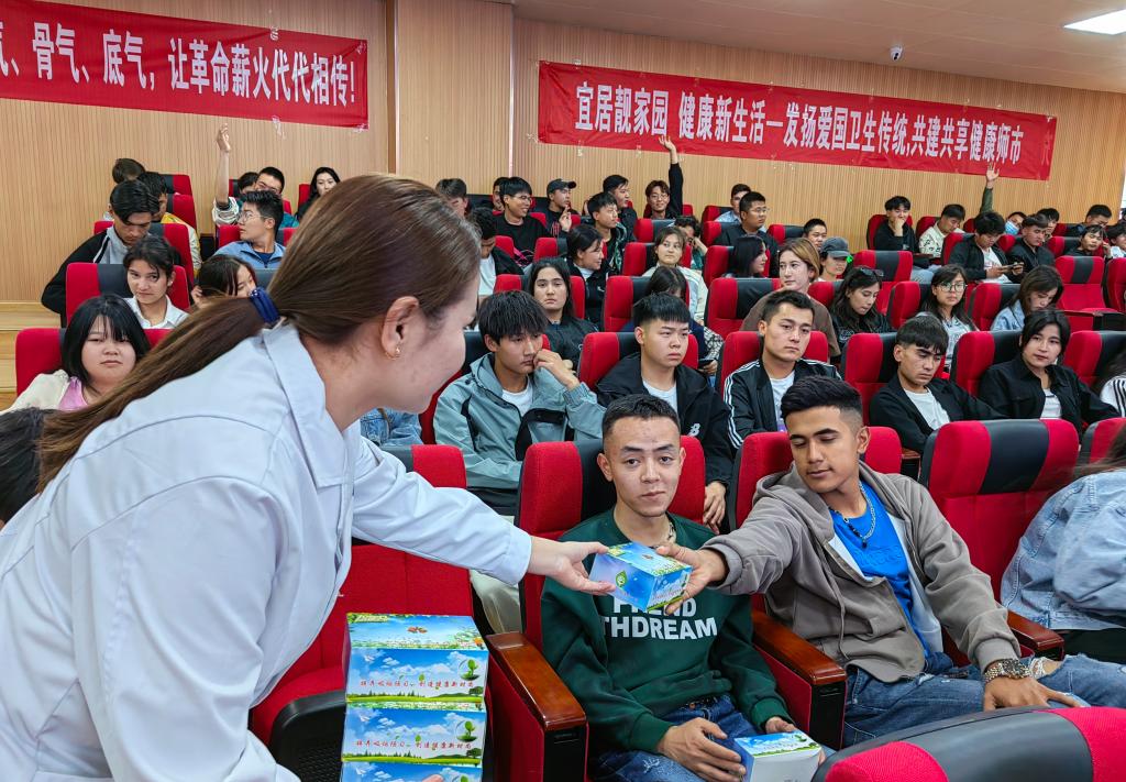 讲座上,医生们耐心地给师生们讲解春季传染病、除“四害”等卫生预防知识、宣传文明城市创建工作;活动现场,疾控中心的医生和同学们积极互动,30余人参与有奖问答,活动现场发放印有爱国卫生内容的签字笔及印有疾病预防知识的抽纸200余个。