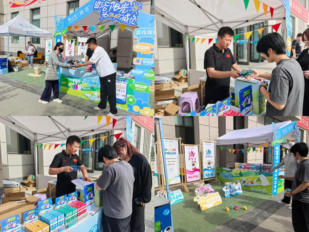 在实践活动环节,师生前往学院食堂外区域,参与企业组织的“阳光为眼减负”及丢沙包趣味活动,并领取护眼宣传手册等资料。