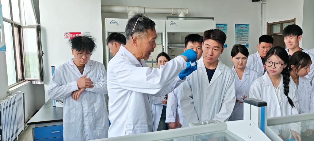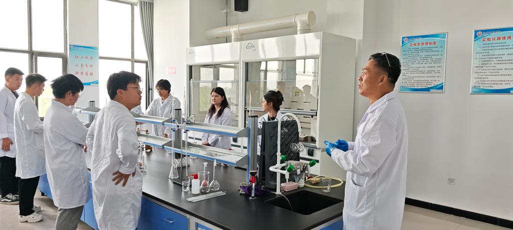 6月11日,学院援疆教师吴广臣教授为2023级分析检验技术专业50余名学生进行实操训练指导。实操过程中,吴教授围绕仪器规范使用、样品分析流程等关键环节进行详细讲解与操作示范。以酸碱滴定实验为例,他全程指导学生完成溶液配制到滴定操作步骤,及时纠正操作偏差。学生在掌握标准实验技能的同时,也深刻感受到其严谨细致的治学态度,夯实了专业实践基础。