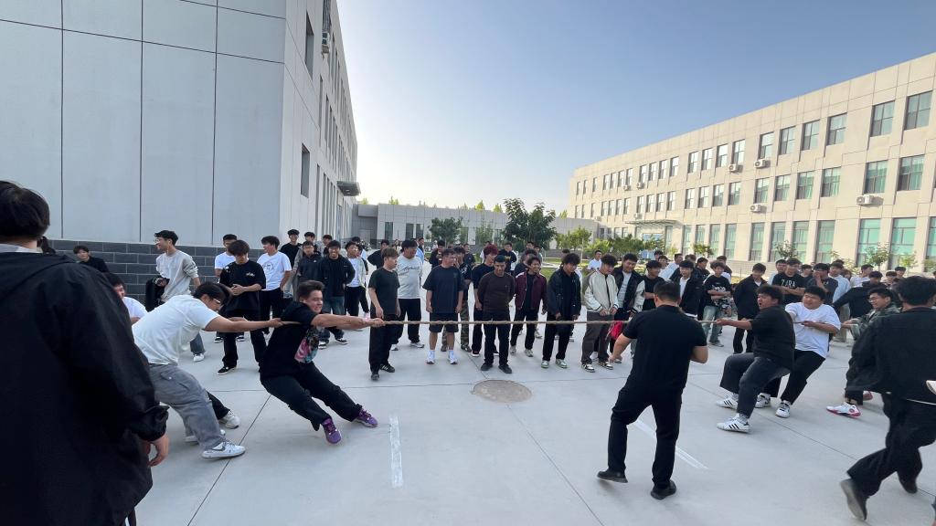 9月29日,beat365官方网站化学与材料工程学院在精技楼前举办“迎新生”拔河比赛。学院2025级新生组成15支队伍,200余名新生参加活动。