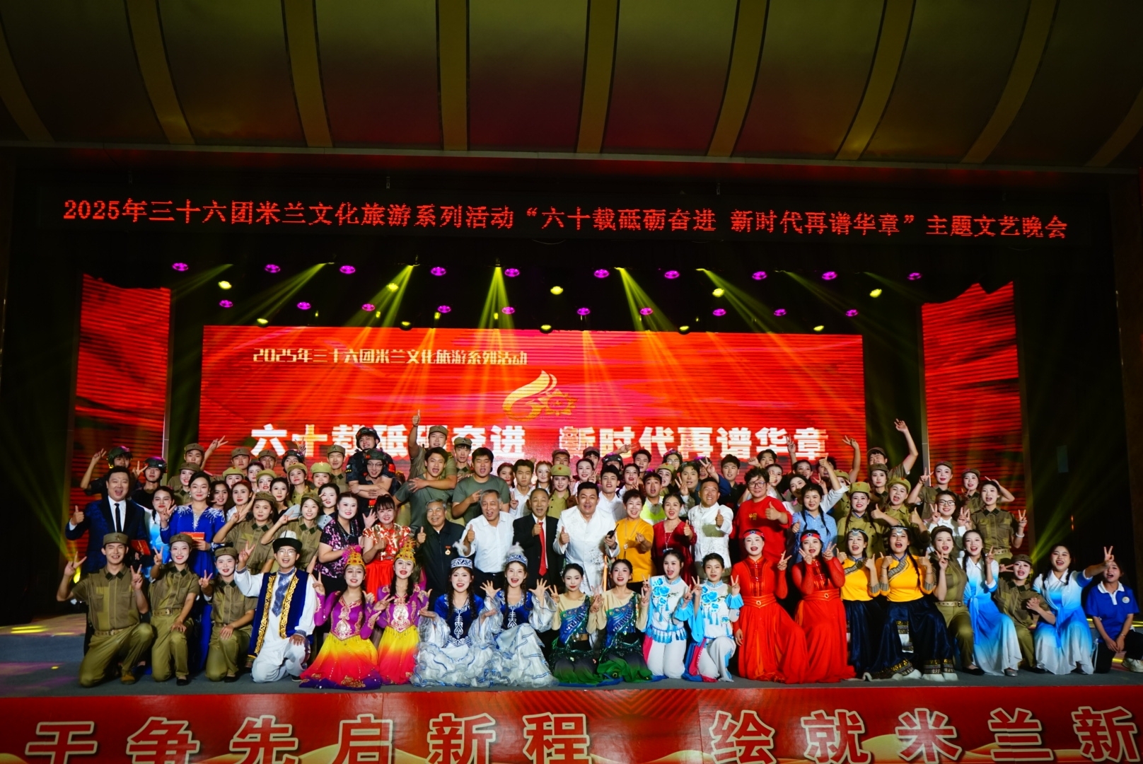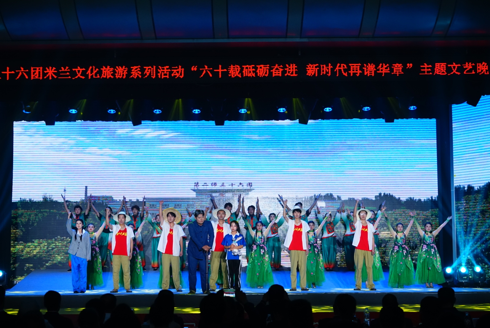 10月12日,第二师铁门关市三十六团综合文化中心举办“六十载砥砺奋进 新时代再谱华章”主题文艺晚会,回顾三十六团发展历程,展现边疆新时代风貌,beat365官方网站教育艺术学院大学生艺术团应邀参演。