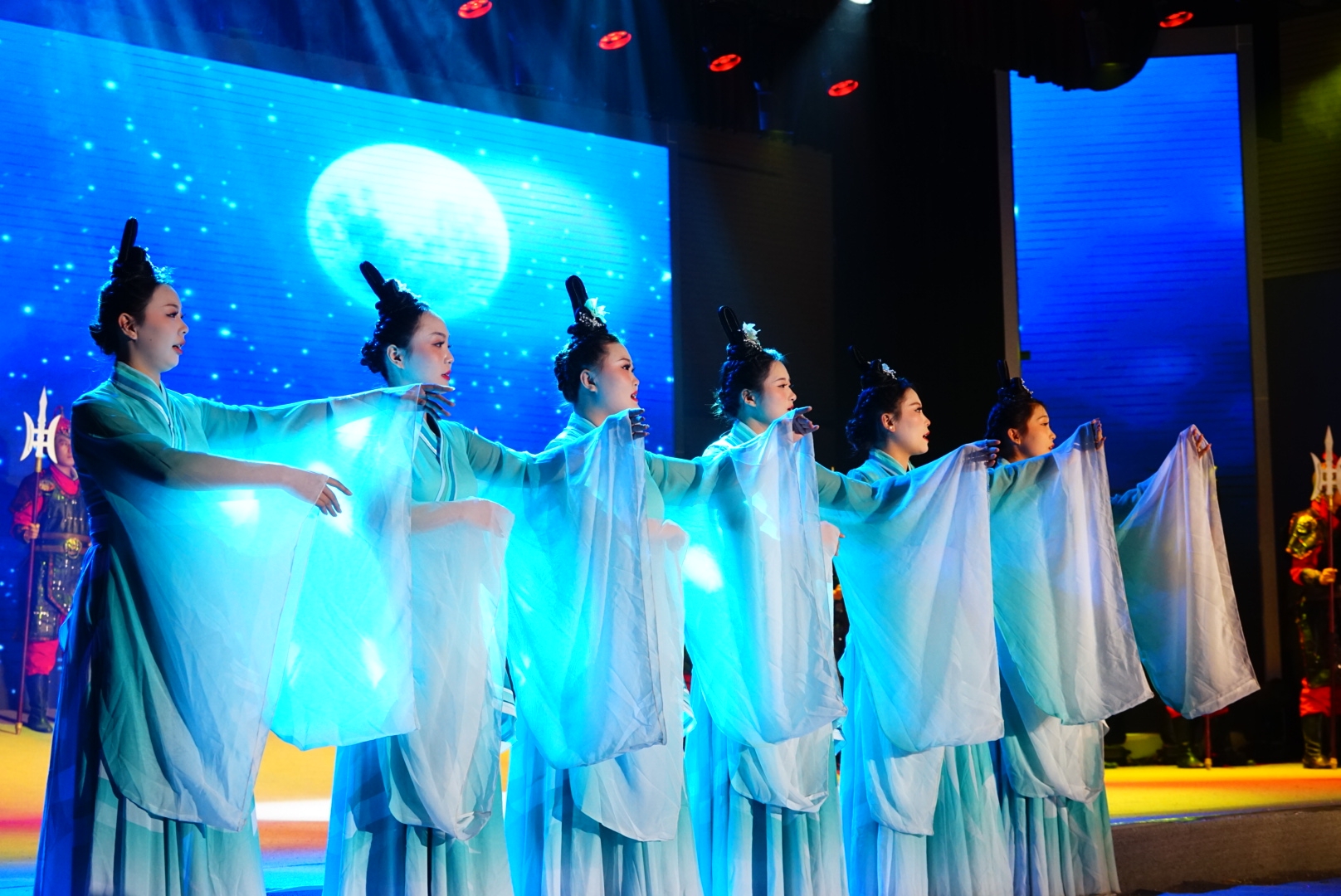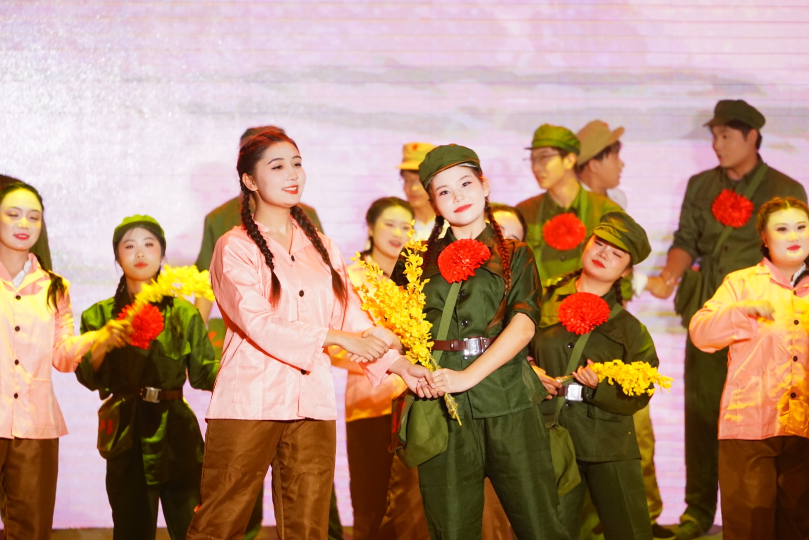 晚会现场,学生们通过铿锵有力的舞蹈和生动真切的表演,艺术再现了边疆建设历程,展现出新时代青年的责任担当,精湛的专业技能和饱满的演出热情赢得现场观众一致好评。