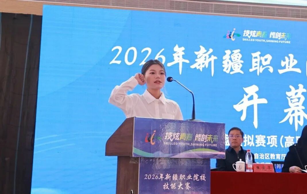 在全体与会人员的热烈掌声中,大会宣布2026年新疆职业院校技能大赛高职组“企业经营沙盘模拟”与“直播电商”赛项正式开幕。在接下来2天的比赛中,各代表队将在两个赛项中展开激烈角逐,一展新时代职教学子的专业风采。
