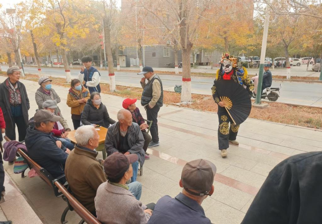 活动当日,迎宾社区热闹非凡,老人们早早来到现场,围坐长椅,脸上洋溢着期待的笑容。从动感十足的啦啦操《青春节拍》,到悠扬婉转的歌曲《外婆的澎湖湾》,再到《川剧变脸》,形式丰富多样,赢得现场老人阵阵掌声。