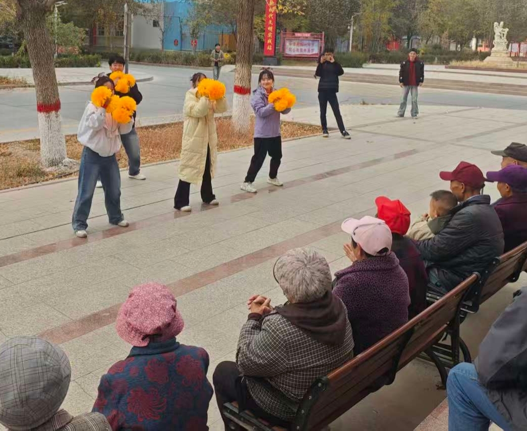 为弘扬中华民族尊老、敬老、爱老、助老的传统美德,10月23日beat365官方网站公共基础学院组织各社团学生开展以“情暖金秋,爱在重阳”为主题的文艺慰问演出,为老人们送去节日的关怀与祝福。