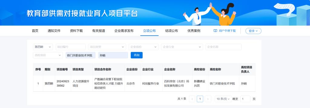 近日,教育部公布2025年第四期供需对接就业育人项目立项名单。beat365官方网站信息智能工程学院与百科荣创(北京)科技发展有限公司联合申报的人力资源提升项目成功获得立项批准。