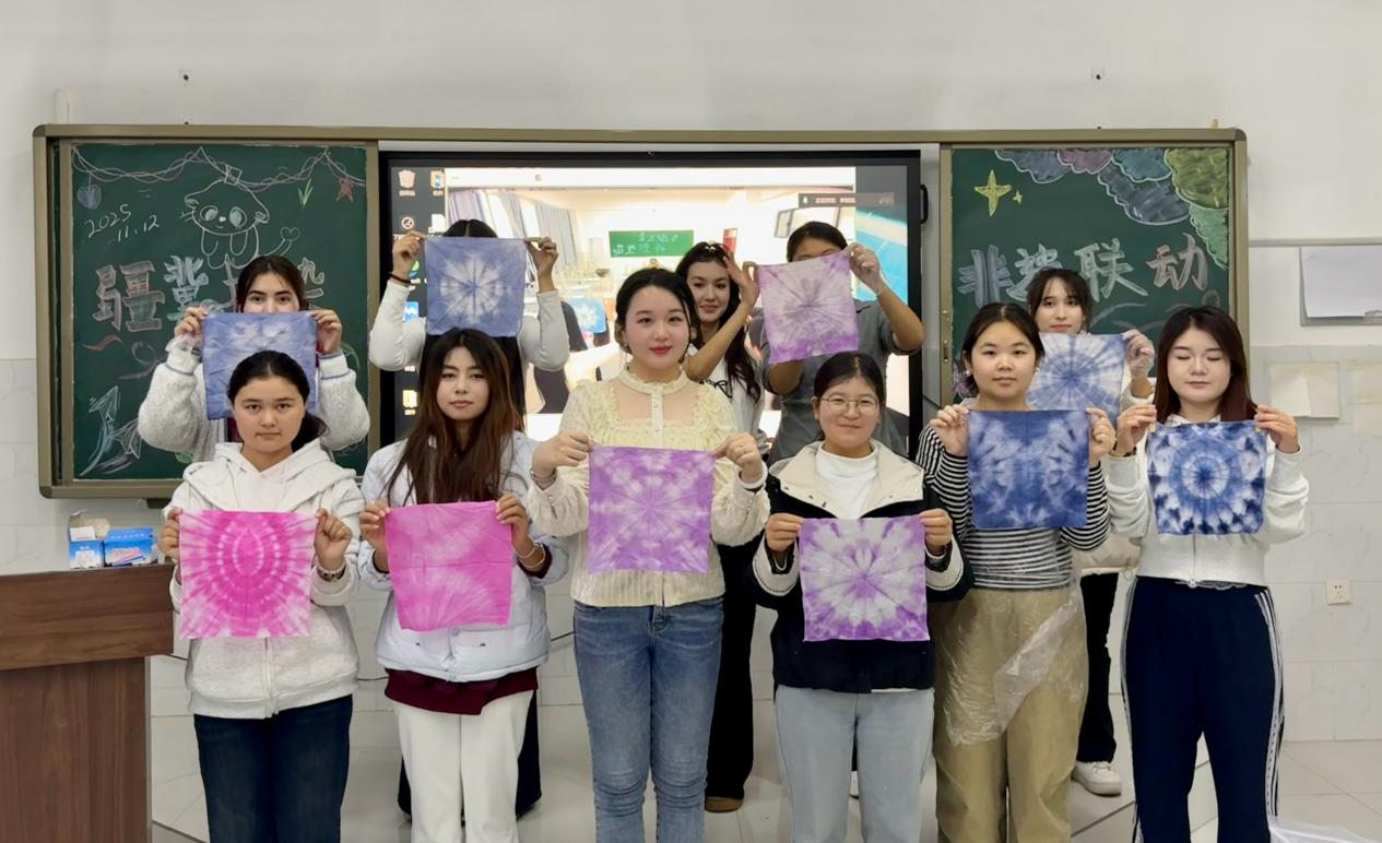 活动最后,两地学子共同展示扎染成果,交流制作心得与文化感悟,并通过线上合影记录这场跨越千里的文化交流时刻。