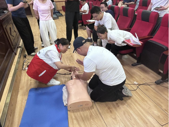 培训过程中,二师红十字会急救专家通过生动的案例分析,深入浅出地讲解了常见意外事故的紧急处理方法,包括心肺复苏、AED的使用、止血包扎、骨折固定等,详细介绍了每一项急救技能的操作要领并进行示范,让大家更加直观地了解正确的操作方法。