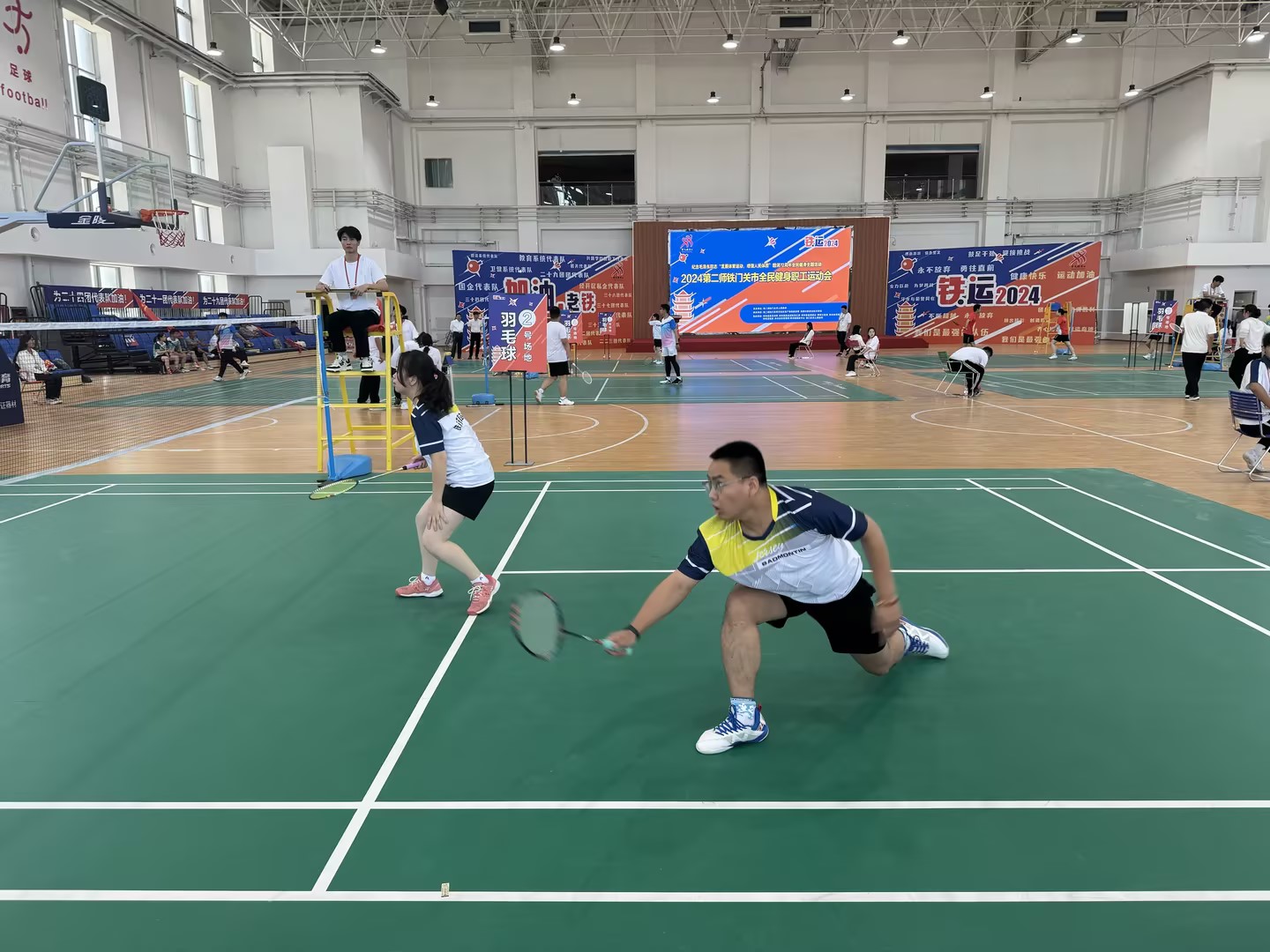 羽毛球比赛中,精准利落的扣杀、灵活多变的吊球、强劲有力的挥拍,精彩互博轮番上演,现场气氛十分火热。