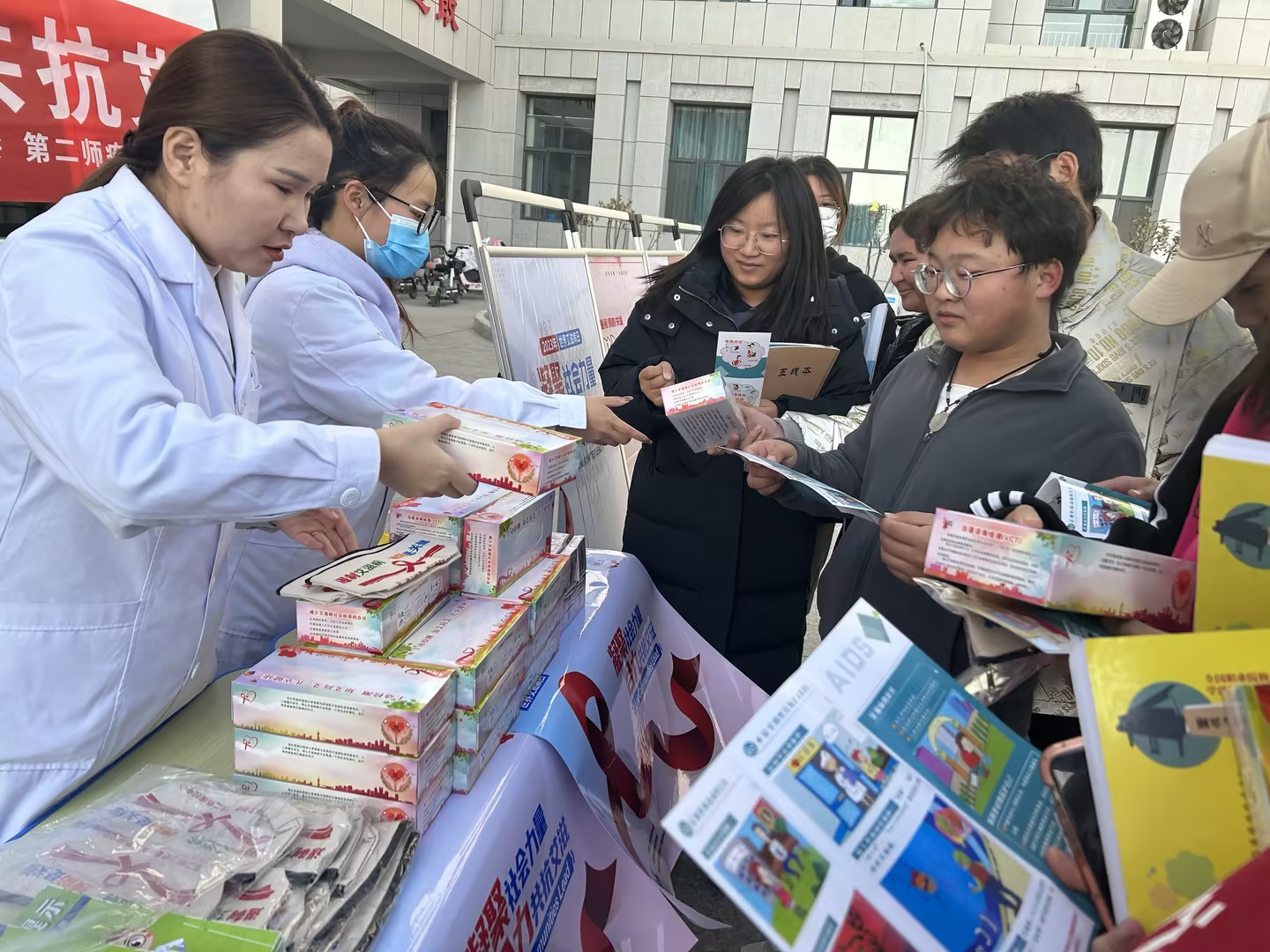 在第36个“世界艾滋病日”来临之际,为进一步提高在校大学生禁毒防艾健康意识,培养文明健康的生活方式和自我防护能力,11月30日,beat365官方网站联合第二师铁门关市疾控中心、第二师铁门关市禁毒委员办公室开展了以“凝聚社会力量,合力共抗艾滋”为主题的“禁毒防艾”宣传活动,200余名师生参加活动。