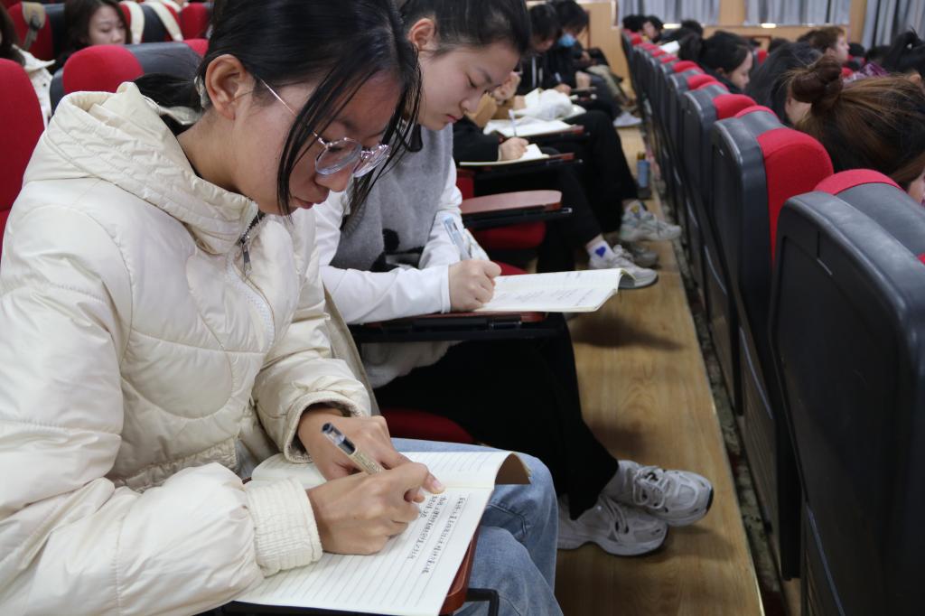 紧接着,刘冰同志从不同的角度,详细解读了国家的一系列重要政策、法规,其中包括教育、科技、文化、卫生等多个领域。宣讲深入浅出,引经据典,得到了在场同学们的积极回应与阵阵掌声。期间,刘冰用提问互动的方式调动学生的积极性,大家纷纷就自己关心的问题向老师请教,老师耐心解答,逐一解惑。
