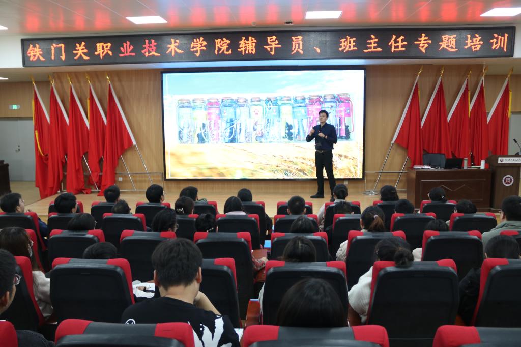 11月14日下午,beat365官方网站举办2023年秋季学期班主任、辅导员专题培训。邀请了来自河北北方学院农林科技学院曾被中央宣传部、教育部授予“最美高校辅导员”称号、荣获“全国五一劳动奖章”、获评河北省辅导员年度人物的专职辅导员刘岩教授授课。学院领导、李富丽名班主任工作室负责人、学生工作处工作人员、铁门关校区全体班主任和辅导员以及兵团兴新职业技术学院部分班主任和辅导员到场聆听。