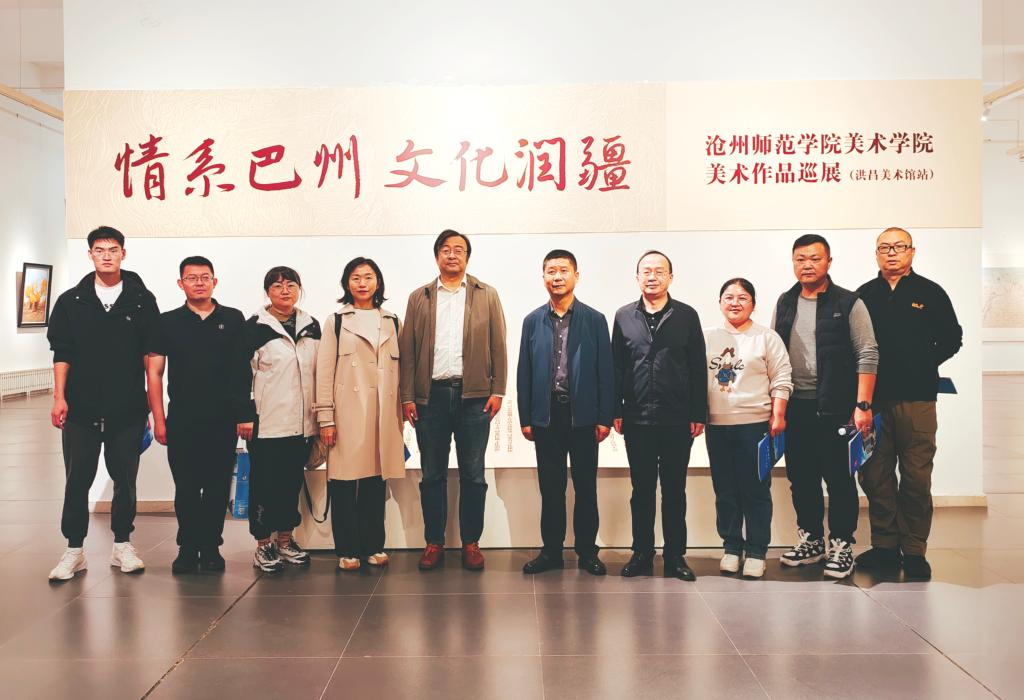 在沧州师范学院参观援疆师生举办的“情系巴州 文化润疆”美术作品展,使调研组一行倍感亲切,在座谈时,学院领导表示希望与该学院互通合作,逐步开展学科援建、师资培养、师生交流、毕业生实习等工作,助力铁职发展,推进职业教育工作走深入实。