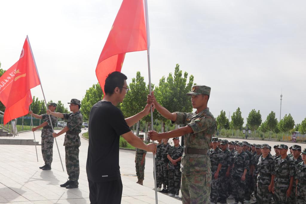 教官代表韩明育表示,军训是大学生活的一部分,也是人生的一个重要阶段。它不仅仅是一门课程,更是一个了解自己、塑造自己的过程,希望同学们通过这13天的国防教育,体验到军人的严谨和自律,学会勇敢、担当与自我认知,实现自我的跨越和成长。