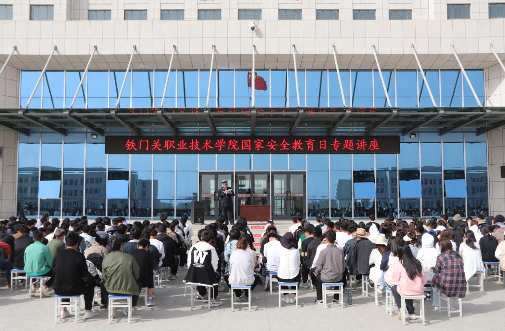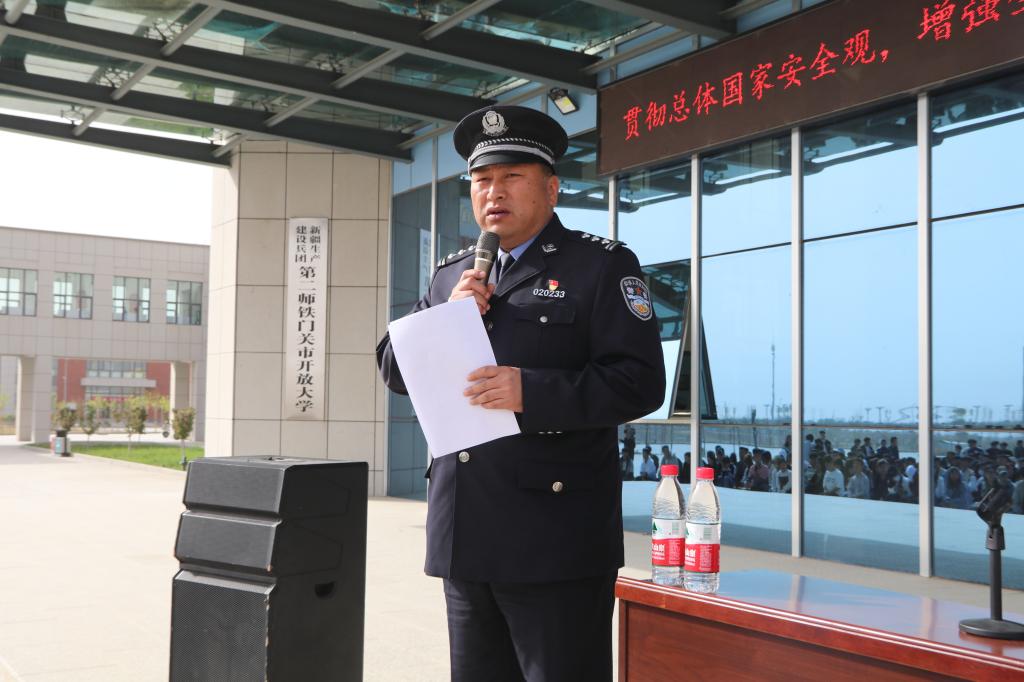 4月14日下午,beat365官方网站举办第八个全民国家安全教育日宣讲活动暨法治副院长进校园“国家安全教育日”专题讲座。此次讲座在铁门关校区燕赵楼前广场举行,学院法治副院长、巴格吉格代派出所所长李洪武对在场近千名学生进行普法国家安全教育。