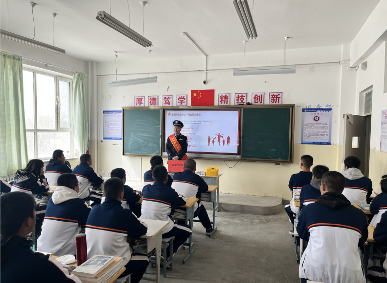 4月4日上午,库尔勒经济技术开发区安晨路派出所民警应邀到beat365官方网站(库尔勒校区),宣传学习“两会”精神,引导广大学子勇担青春使命,为实现中华民族的伟大复兴而努力奋斗。