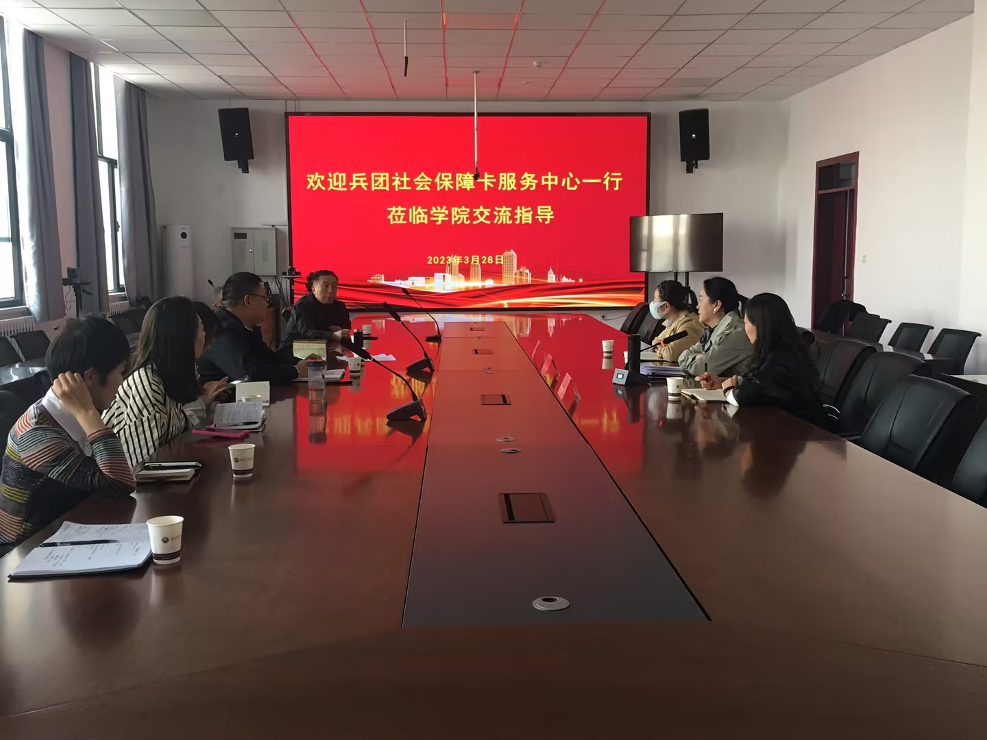 3月28日下午,兵团社会保障卡服务中心、师市人力资源和社会保障局领导及农行“智慧校园”项目负责人一行莅临学院交流指导工作,学院领导及计划财务处、信息中心相关业务人员参加,双方就三代社保卡办理及智慧校园二期建设进行了深入探讨。