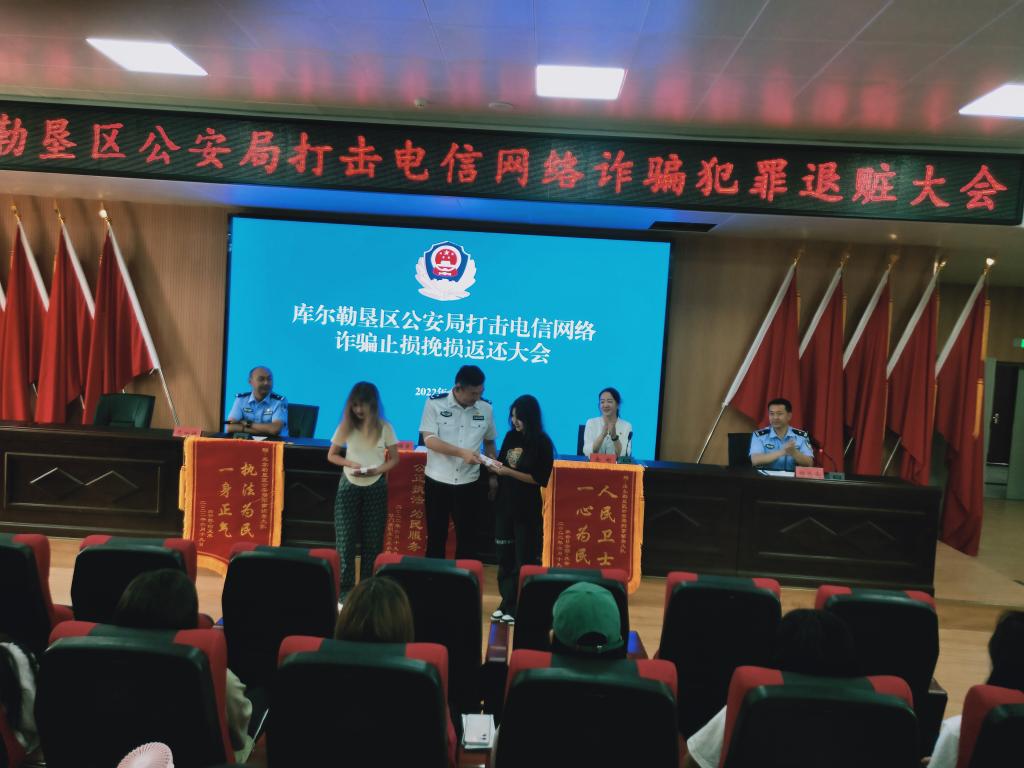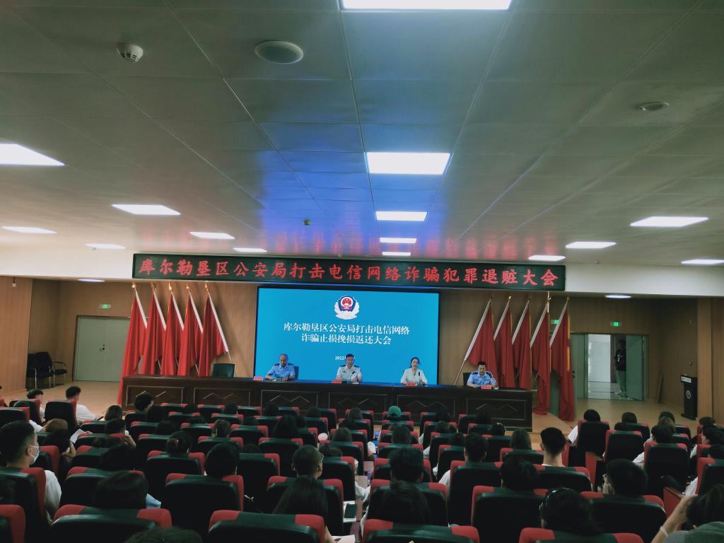 6月21日,beat365官方网站联合库尔勒垦区公安局共同举办打击电信网络诈骗犯罪退赃大会,库尔勒垦区公安局领导、学院领导、学生代表共计200余人参加。
