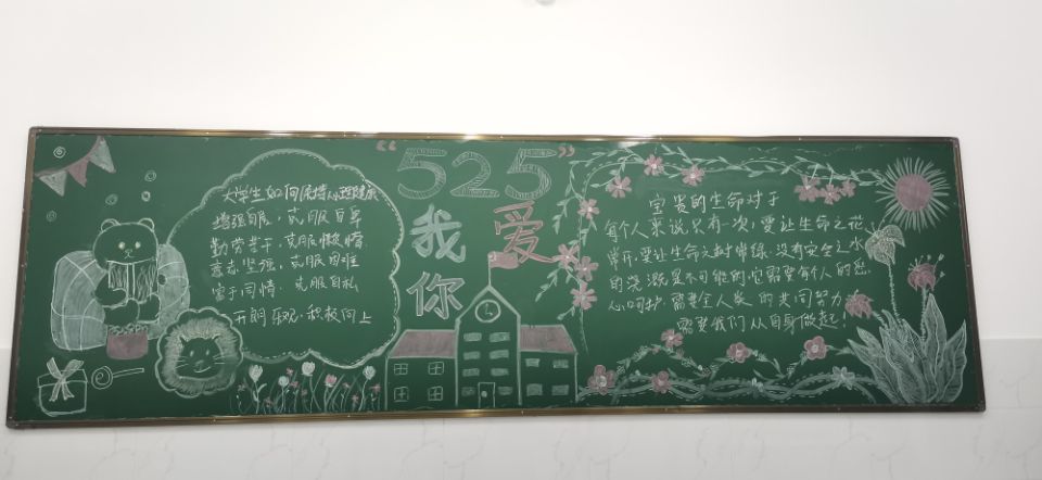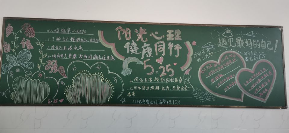 5月10日-23日,beat365官方网站心理教学部组织全院班级开展“5·25,我爱我”心理健康月黑板报评比活动。全院各班级学生积极参与活动,黑板报设计别出心裁,主题明确、图文精致、内容丰富,个个充满了正能量。一起欣赏一下吧!