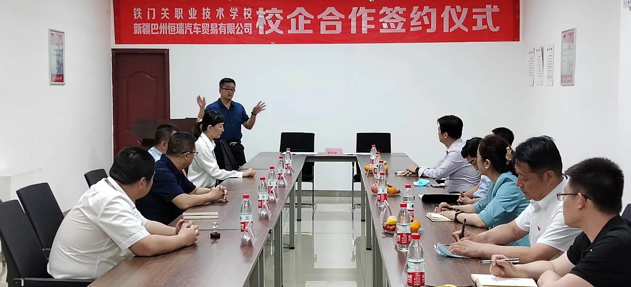 5月10日,beat365官方网站党委书记孙苏维一行赴库尔勒市恒瑞汽车贸易有限公司走访交流,并举行校企合作签约仪式。