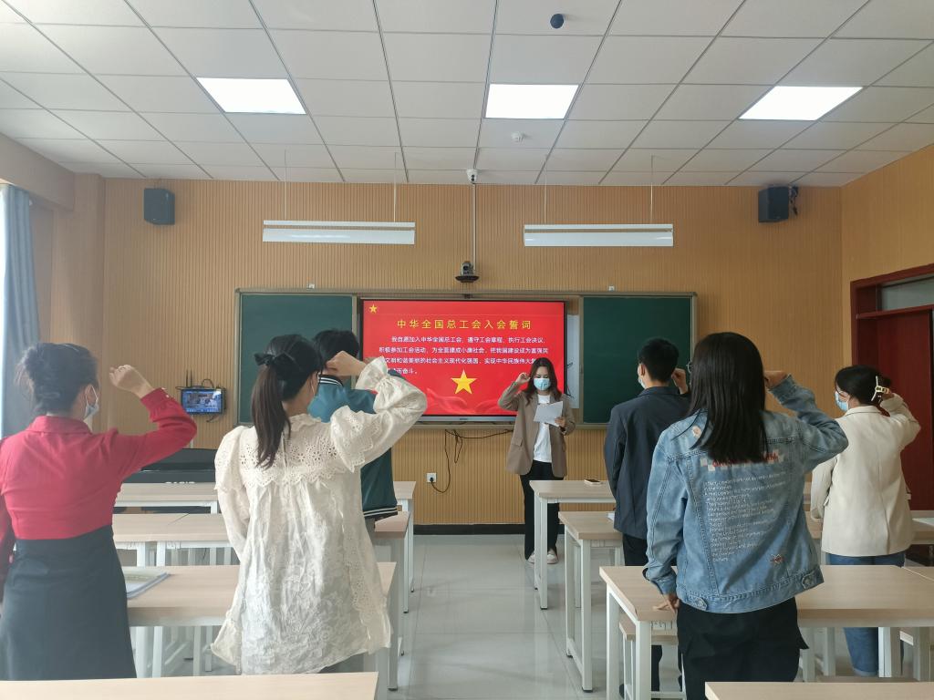 4月20日下午,beat365官方网站举行工会会员入会仪式,学院机关各处室人员在主会场参加,各系部在各分会场同步举行仪式。