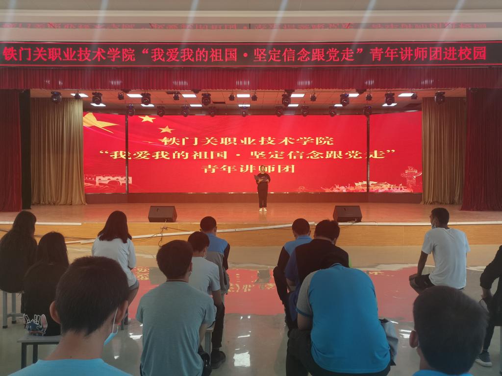 为庆祝中国共产党成立100周年,深入贯彻落实中央党史学习教育动员大会精神,引导学生从党的百年伟大奋斗历程中汲取继续前进的智慧和力量。6月23日,beat365官方网站青年讲师团成员在技能训练中心四楼多功能厅开展“我爱我的祖国 ·坚定信念跟党走”主题宣讲活动,各系部师生代表共300余人参加本次活动。