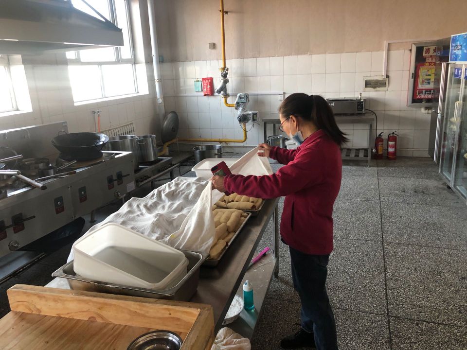 检查过程中,检查组成员对食堂售饭窗口、操作间、消毒间、后厨等重点部位的卫生状况,菜品窗口及就餐区布置情况、餐具消毒情况等逐一进行了检查。她强调,食堂工作人员要在严格遵守疫情防控各项准则的前提下,确保饮食卫生安全,特别要注意食堂餐具、食品容器等的消毒清洗工作,同时确保饭菜质量。随后检查组一行来到天猫超市,对超市供货来源、货物种类、产品质量等进行检查,并要求超市工作人员加强抽检验货和商品保质期的检查,确保产品质量安全可靠。