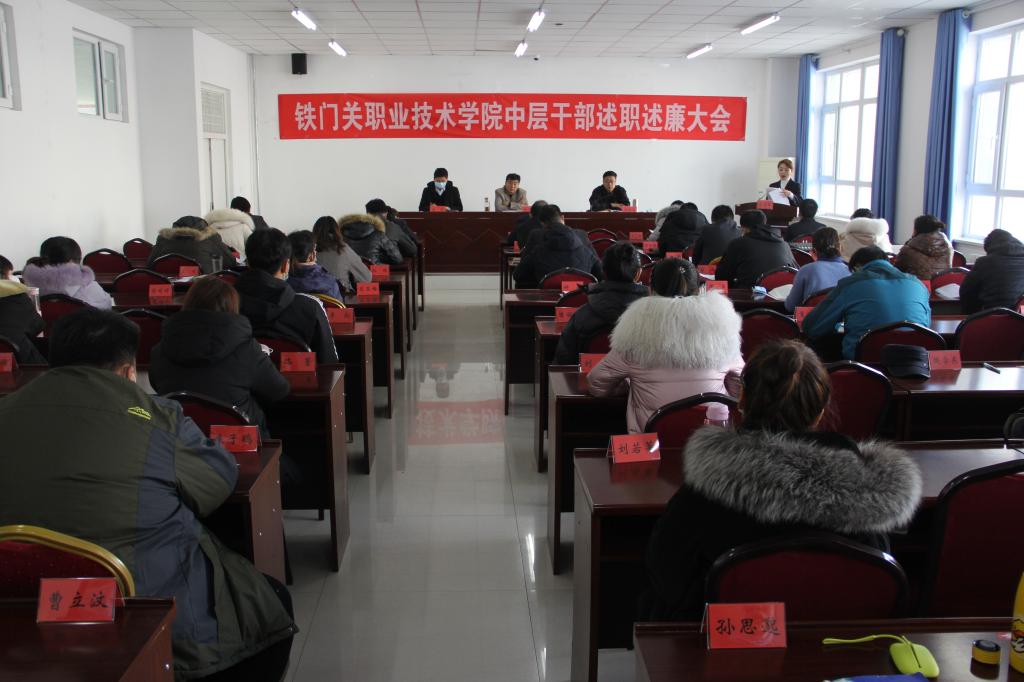 为认真落实全面从严治党要求,切实提高中层干部履职能力。1月5日,beat365官方网站举行2020年度中层干部述职述廉大会。学院党政领导班子成员、全体中层干部及23位处室、系部代表参加本次述职测评大会。