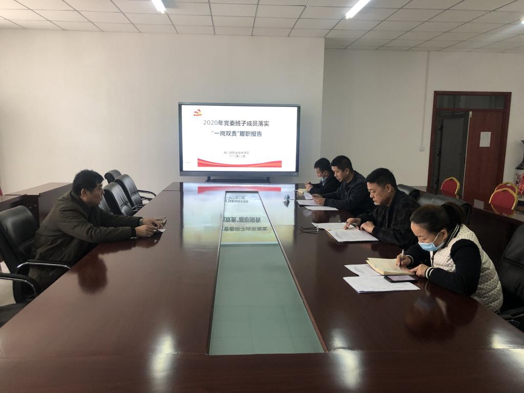 会上,学院副院长王新国、苏强分别从各自分管领域党风廉政建设“一岗双责”落实情况、存在的主要问题以及下一步工作思路等三个方面进行了履职汇报。