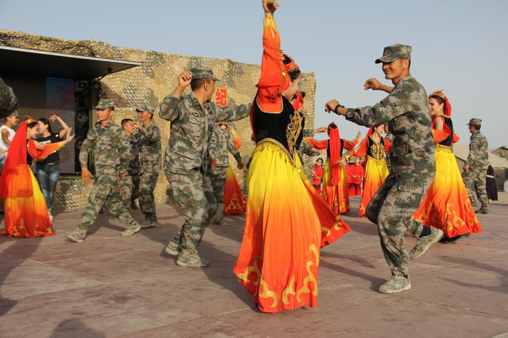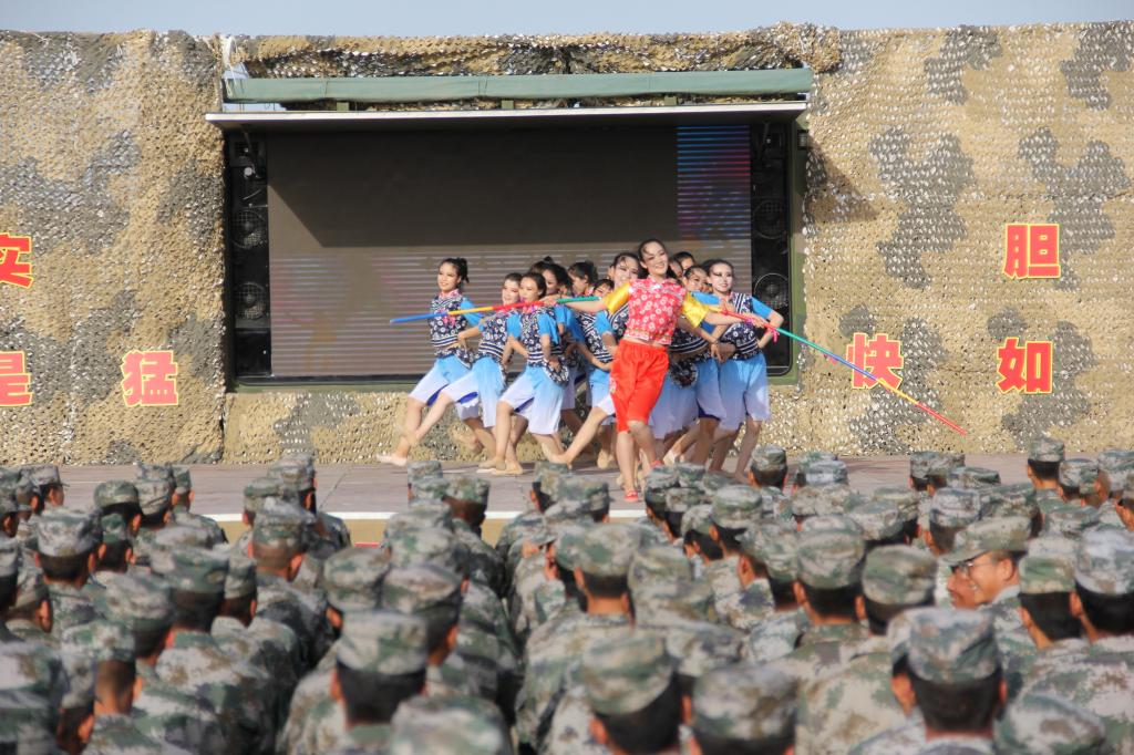 6月15日,新疆生产建设兵团第二师beat365官方网站白鹭艺术团40余名师生来到中国人民解放军某部队营地进行慰问演出。本次演出该校师生和军营战士们共同表演了8个节目,通过军民文化交流,进一步激发了师生爱国之情,强化爱国之志。